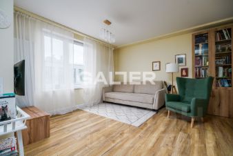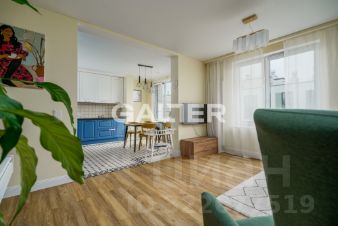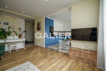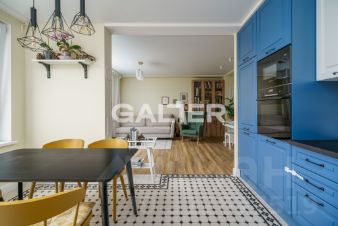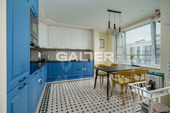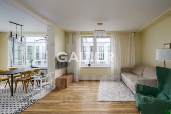 Продается двухкомнатная квартира с дизайнерским ремонтом и кухней-гостиной в современном жилом комплексе в историческом центре Петербурга.
