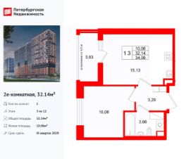 Удобная, классическая, функциональная европланировка, большая кухня-гостиная 15.13 м², вместительная прихожая 3.29 м². Общая площадь квартиры - 32.14 м², жилая 10.06 м², высота потолка 2.77 м.