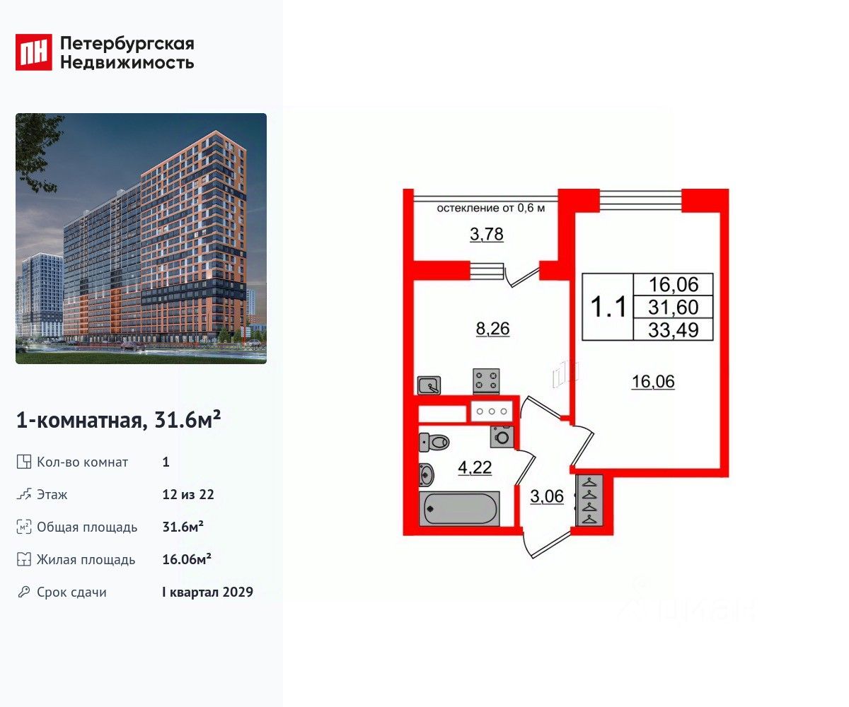 Удобная, классическая планировка, кухня 8.26 м², вместительная прихожая 3.06 м². Общая площадь квартиры - 31.6 м², жилая 16.06 м², высота потолка 2.77 м.