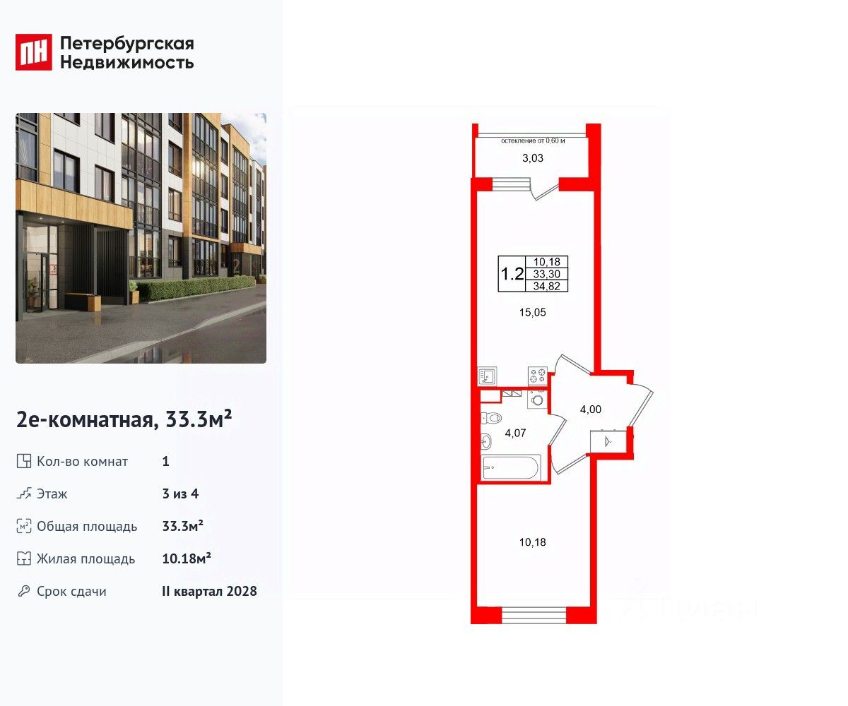 Удобная, классическая, функциональная европланировка, большая кухня-гостиная 15.05 м², вместительная прихожая 4 м². Общая площадь квартиры - 33.3 м², жилая 10.18 м², высота потолка 2.77 м.