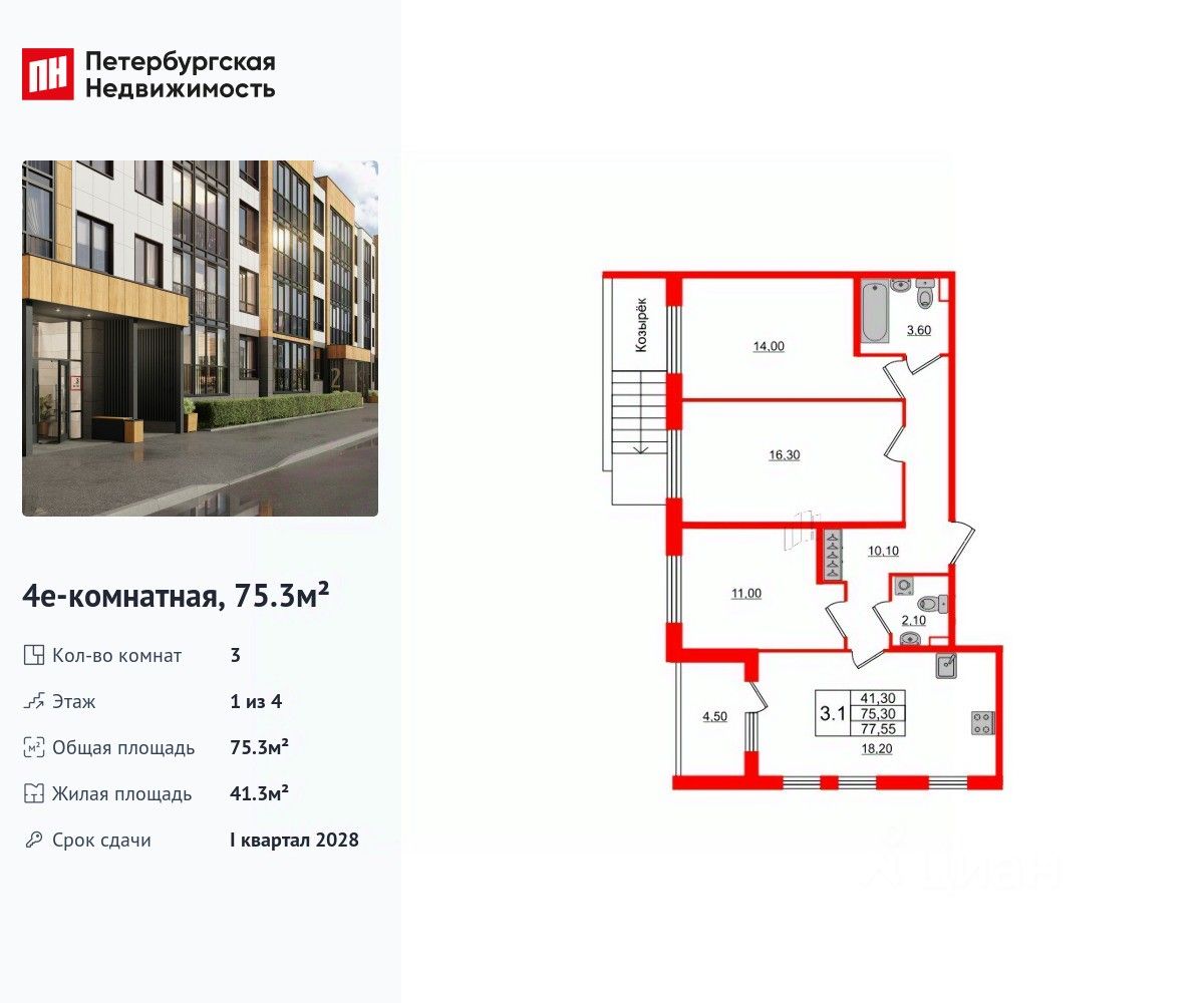 Продается уютная, семейная 3-комнатная квартира от застройщика в жилом комплексе "Univer City" в на юге Санкт-Петербурга. До метро можно добраться на транспорте всего за 30 минут. Удобная, классическая, функциональная европланировка, большая кухня-гостиная 18.2 м², вместительная прихожая 10.1 м². Общая площадь квартиры - 75.3 м², жилая 41.3 м², высота потолка 2.78 м. Квартира продается с отделкой "NORD LINE WHITE". Что особенного в ЖК "Univer City"? • Малоэтажное строительство • Скандинавские фасады с отделкой керамогранитом, акцентные входные группы • Закрытые внутренние дворы без машин • Пешеходный променад с тематическими зонами, еловый сквер и яблоневый сад • Univer Park, включая SetlSport и SetlKids, площадку для выгула собак и зоны отдыха • Инновационный Лицей Setl с оригинальной архитектурной концепцией и уникальной образовательной средой
