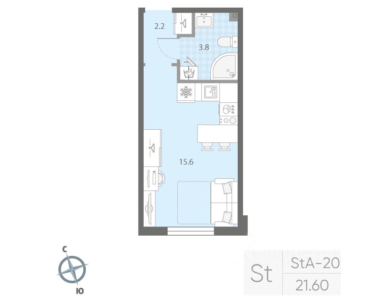 Продается студия в ЖК "Дыбенко Парк" на 3 этаже. Общая площадь составляет 21.60 кв. м. Квартира с чистовой отделкой. Жилой комплекс располагается по адресу Санкт-Петербург, проспект Товарищеский.