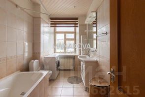 Высокие потолки, массивные стены — классика сталинского дома. Ванная комната с окном.