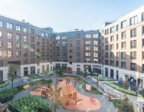 Территория вокруг жилого комплекса продумана с учетом потребностей каждого человека. Цветущий Amber сквер понравится любителям спокойного отдыха: гамаки, арт-объекты, подвесные уличные кресла с навесами от непогоды. Для спортивных тренировок рядом с домом есть полностью укомплектованные площадки SetlSport, а для детей качественные площадки SetlKids, способствующие разностороннему развитию детей всех возрастов. Дворы закрыты от машин припарковать автомобиль можно в подземном паркинге, где он будет под защитой от дождя, ветра и солнечных лучей.