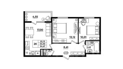 Готовая 2-к квартира 54,75 м² экономией до 2 млн ₽ на ремонте за счет чистовой отделки + Сопровождение "под ключ" и бесплатный персональный юрист с опытом более 10 лет для безопасной сделки!