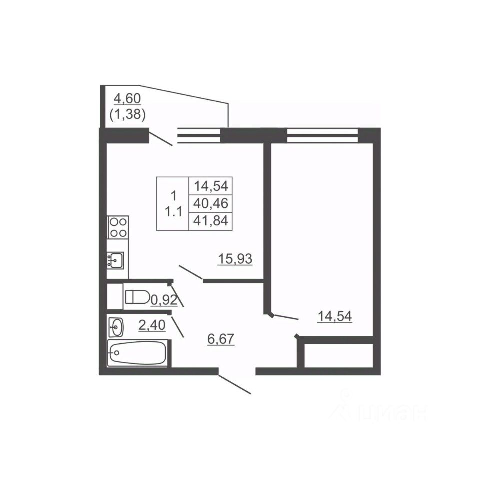 Общая площадь41,84 м²