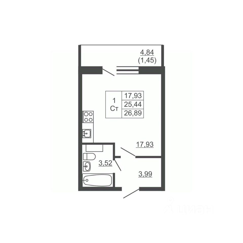 Общая площадь26,89 м²