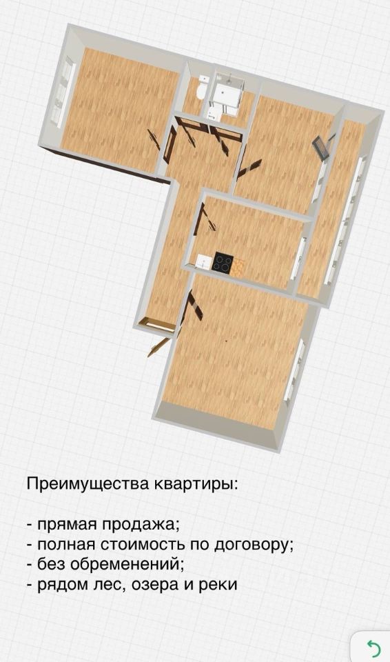 Предлагаем к покупке просторную трёхкомнатную квартиру в Пашозеро