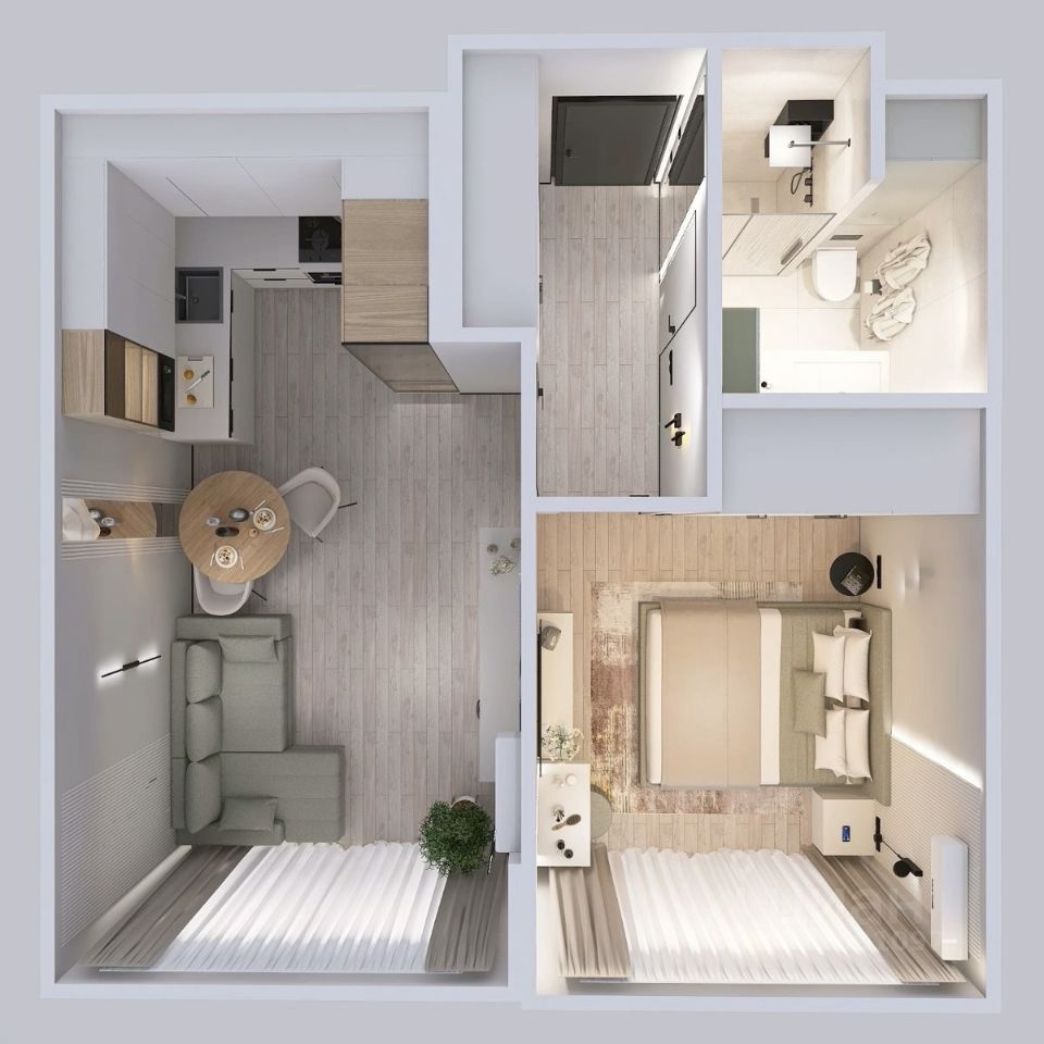 Продажа евро двухкомнатной квартиры общей площадью 33 кв.м. Функциональная современная планировка, кухня гостиная и спальня. Новый современный ремонт.