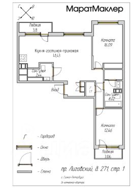 Площадь квартиры указана БЕЗ УЧЁТА 2х лоджий общей площадью - 8 м²!