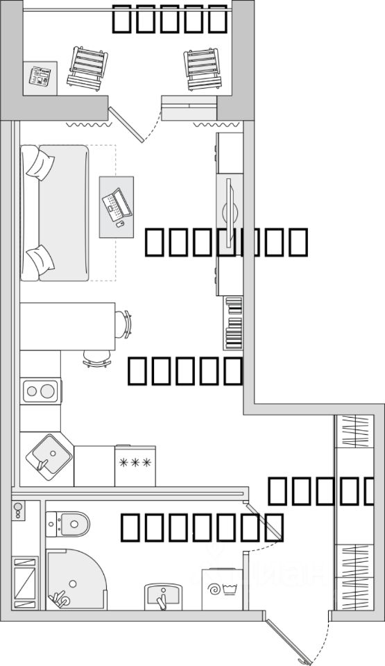 Коммерческие помещения в доме. В районе сформирована вся инфраструктура: магазины, аптеки, банки, фитнес.
