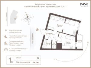 Общая площадь квартиры - 39.2 м2.