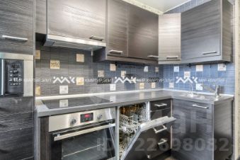 Современная кухня оснащена всей необходимой техникой, включая холодильник, посудомоечную машину и удобные системы хранения.