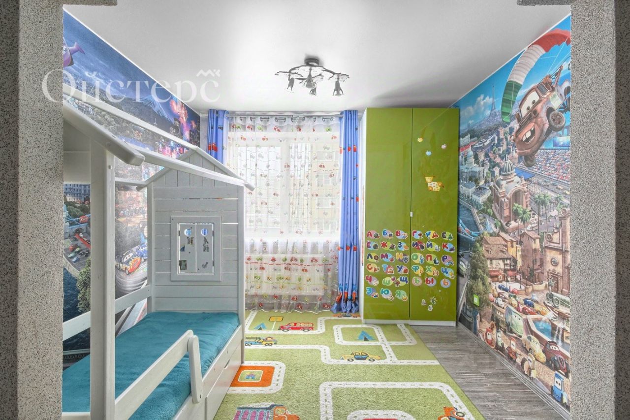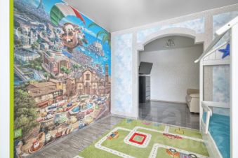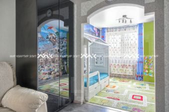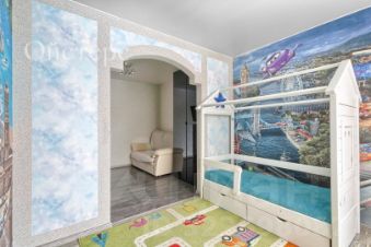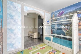 Жилая комната удобно спроектирована и разделена на две зоны. Первая зона - это обустроенная детская, которая не оставит равнодушным вашего малыша. При необходимости её не составит труда адаптировать под другие задачи и сделать из неё кабинет, зону хобби или мини-гостиную.