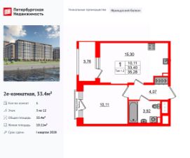 Уникальная, функциональная европланировка, большая кухня-гостиная 15.3 м², вместительная прихожая 4.07 м². Общая площадь квартиры - 33.4 м², жилая 10.11 м², высота потолка 2.77 м.