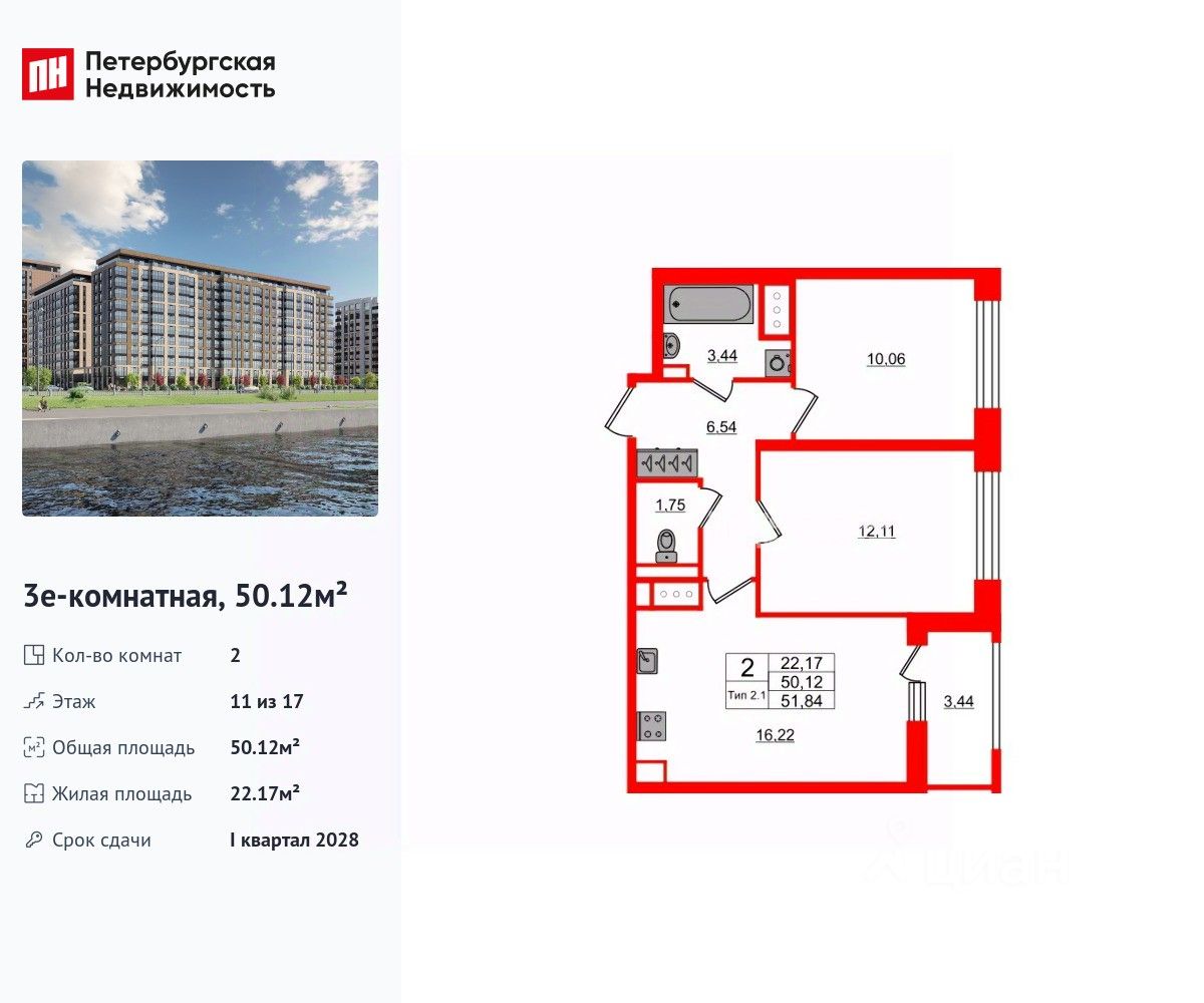 Удобная, классическая, функциональная европланировка, большая кухня-гостиная 16.22 м², вместительная прихожая 6.54 м². Общая площадь квартиры - 50.12 м², жилая 22.17 м², высота потолка 2.77 м.