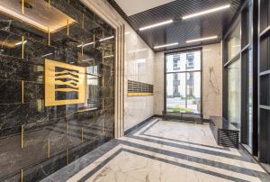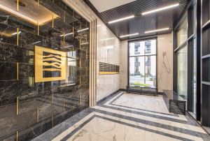 • Парадный холл в стиле арт-деко, с отделкой под мрамор, круглосуточным постом охраны и консьерж-сервисом