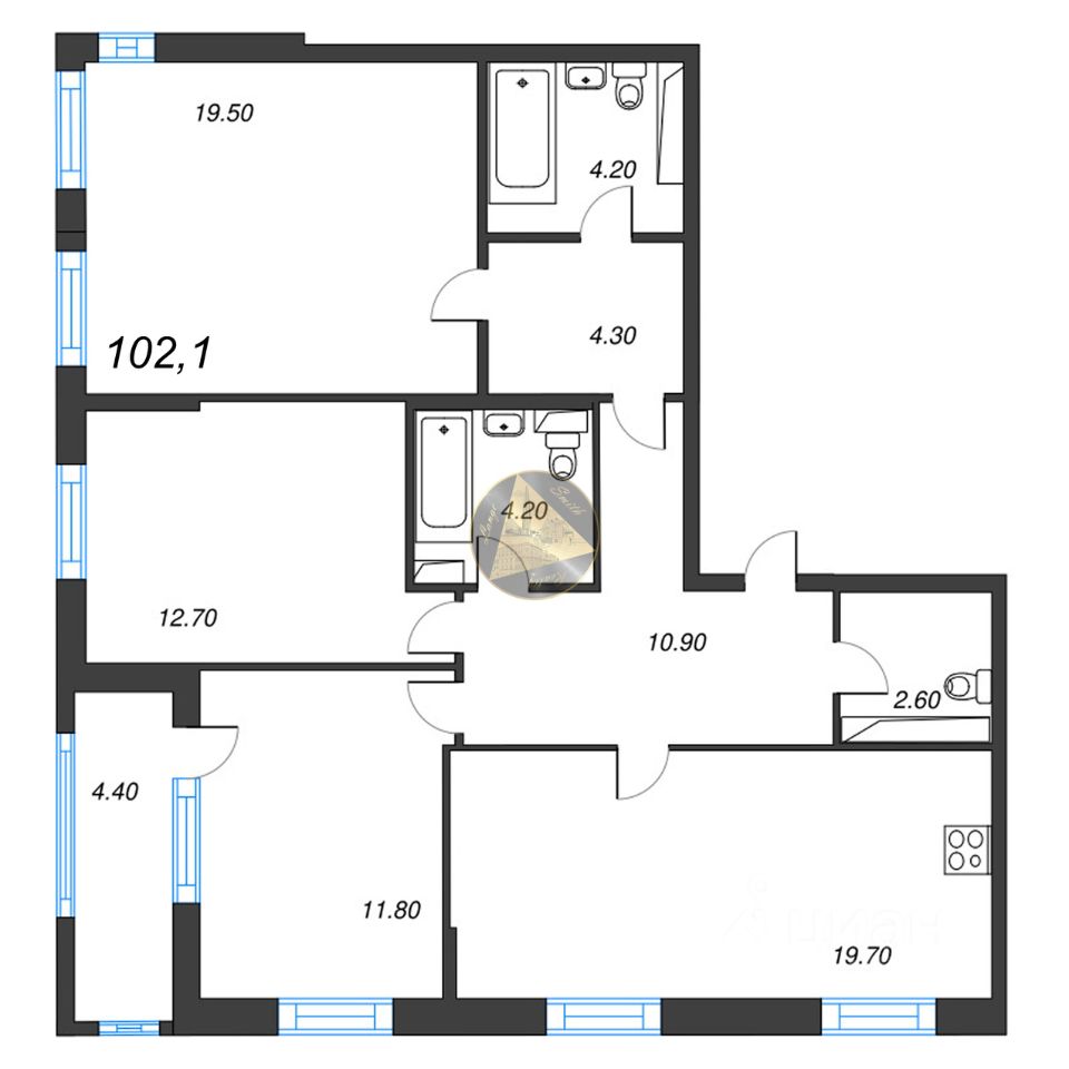 - Общая площадь квартиры 102.1 м2