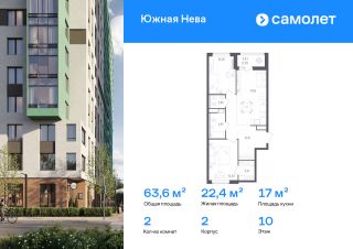 Строим кварталы для жизни с заботой о будущем. Предлагается 2-комнатная квартира комфорт-класса 63,61 кв.м в корпусе 2 на 10 этаже, в ЖК "Южная Нева"