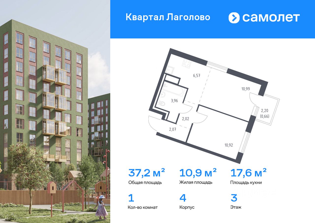 Строим кварталы для жизни с заботой о будущем. Предлагается 1-комнатная квартира комфорт-класса 37,19 кв.м в корпусе 4 на 3 этаже, в ЖК "Квартал Лаголово"