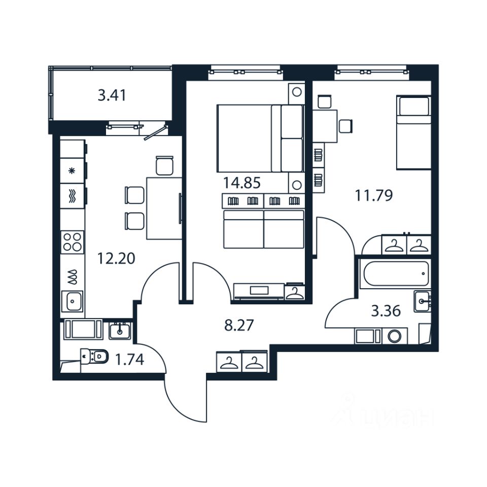 Прямая продажа от застройщика! Готовая Двухкомнатная квартира 51.6 кв.м с кухней 12.2 кв.м с предчистовой отделкой на 11 этаже в сданном ЖК "Полис Лаврики".