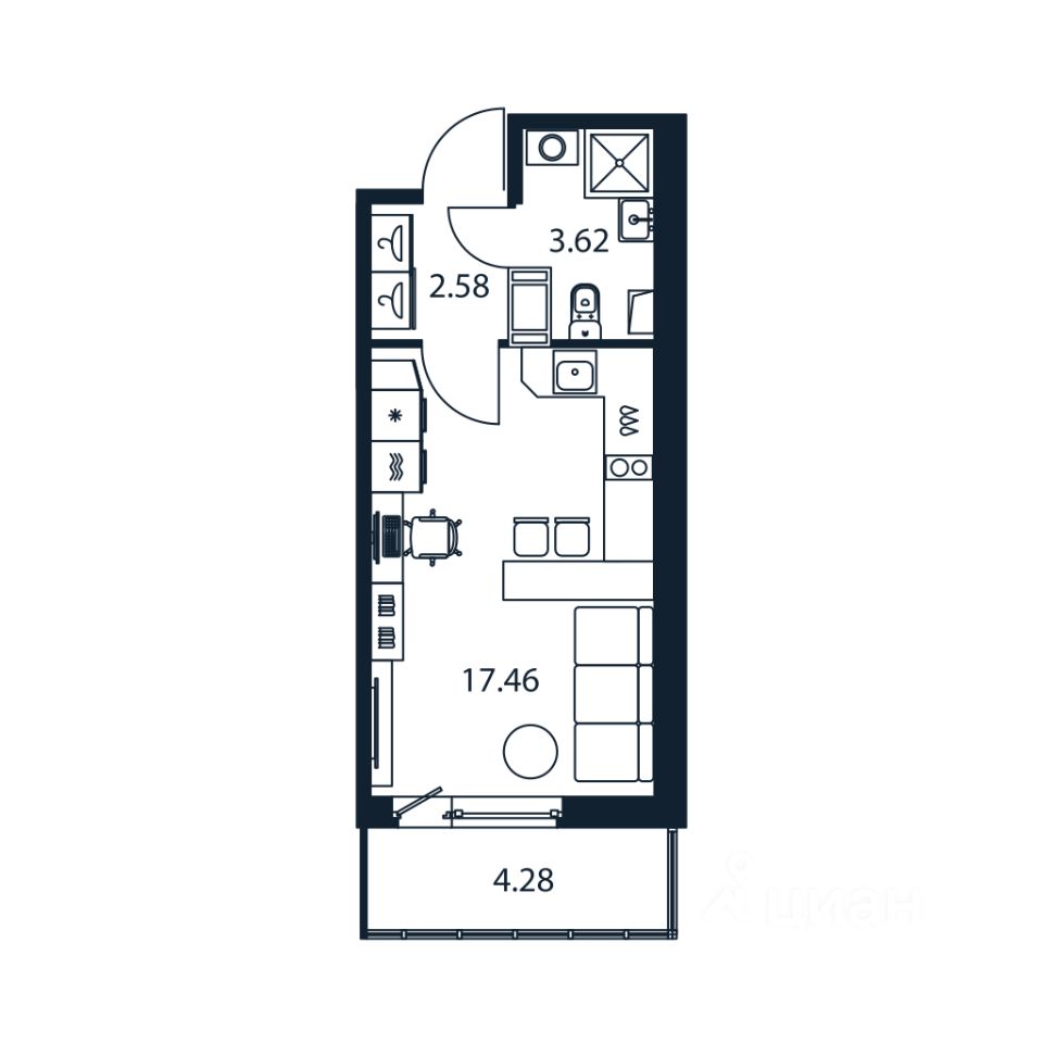 Прямая продажа от застройщика! Готовая Студия 23.2 кв.м с чистовой отделкой на 5 этаже в сданном ЖК "Полис Лаврики".