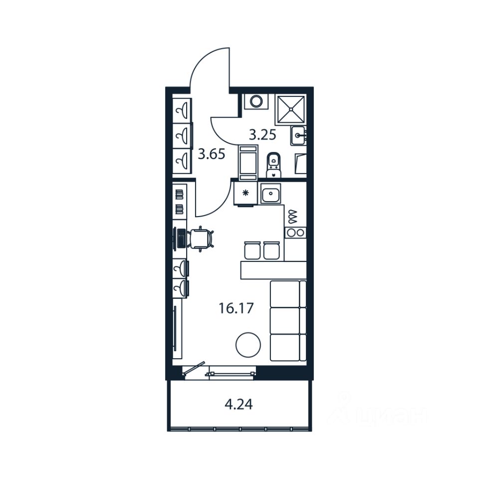 Прямая продажа от застройщика! Готовая Студия 22.7 кв.м с чистовой отделкой на 12 этаже в сданном ЖК "Полис Лаврики".