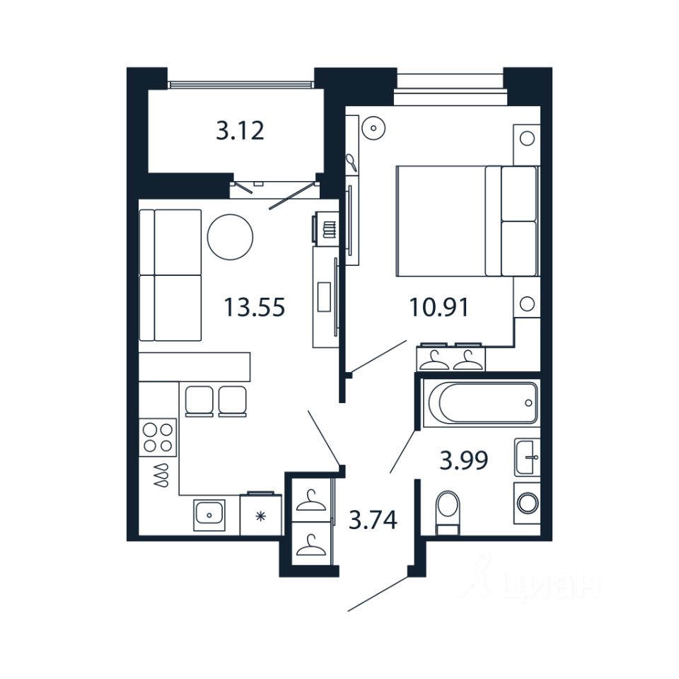 Прямая продажа от застройщика! Готовая Евро-двушка 31.5 кв.м с кухней 13.55 кв.м с чистовой отделкой на 10 этаже в сданном ЖК "Полис Новоселье".