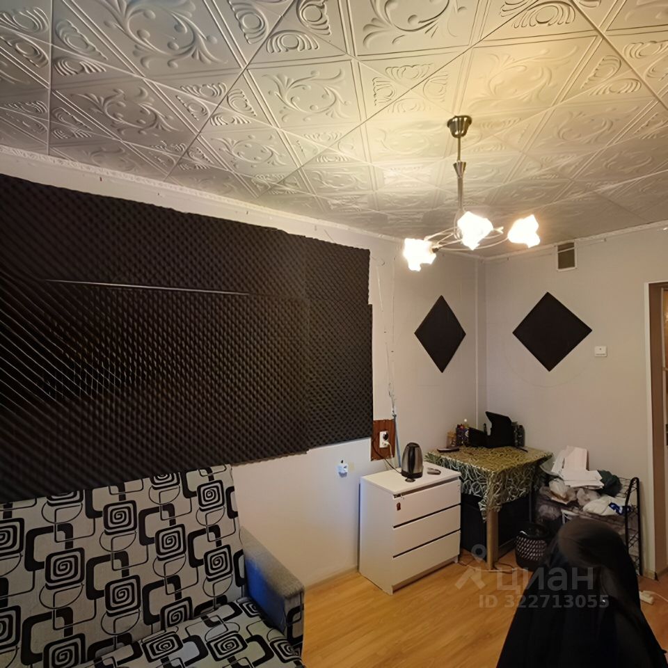 На стенах установлены съемные звукоизоляционные панели (черные квадраты — установил арендатор).