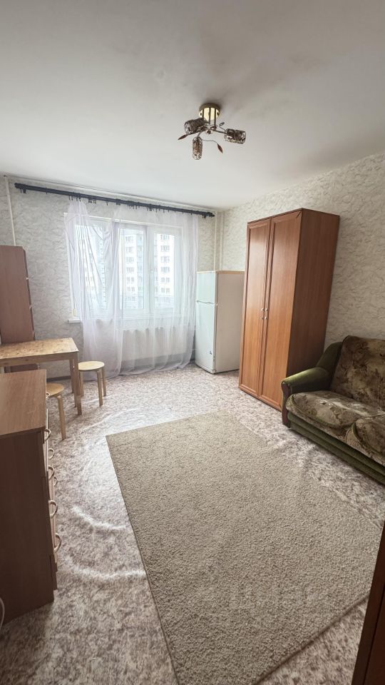 Сама комната светлая, 15.5м. Ремонт хоть и не новый, но аккуратный. Холодильник работает.