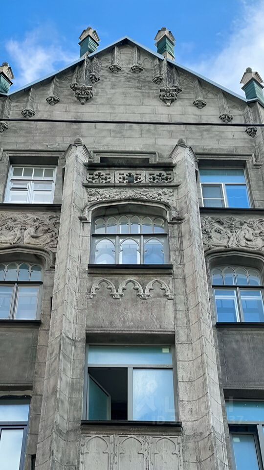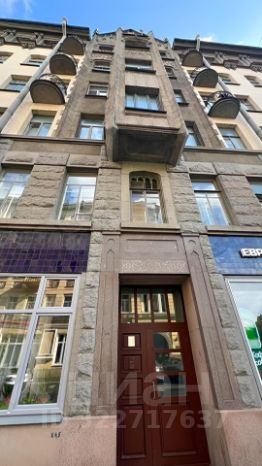 Вход в парадную расположен на 7 Красноармейской ул., напротив сада Валентина Пикуля.