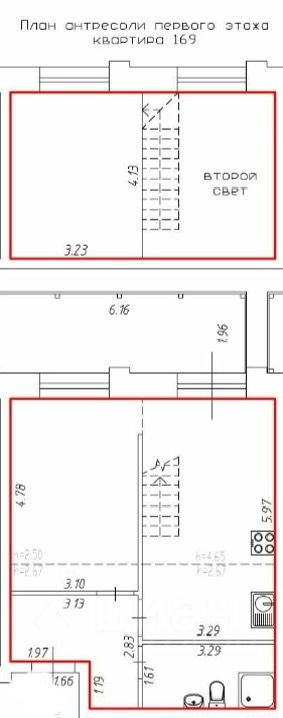 * Высокие потолки: 5м, в комнатах 2.2 и 2.3.