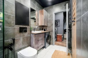 * Кухонный блок: индукционная плита (2 конфорки), вытяжка с отдельной вентиляционной шахтой, посудомоечная машина