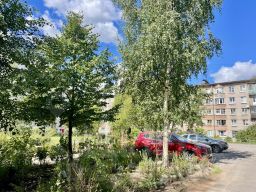 До остановки транспорта до м. Проспект Ветеранов — 5 минут пешком. Рядом школа и детский сад, озеро с пляжем — всё, что нужно для комфортной жизни. Соседи практически все знают друг друга.