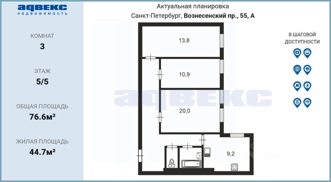 Продается 3-х комнатная квартира в историческом центре Санкт-Петербурга. В шаговой доступности 5 станций метро (Сенная, Садовая, Спасская и Технологический институт (I, II), в перспективе открытие еще одной - Театральной.