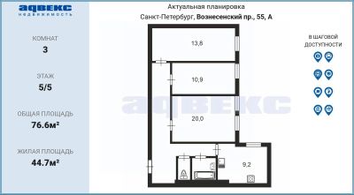 Вход в квартиру в первом дворе, есть ворота на входе в придомовую территорию, возможна парковка. В парадной есть лифт, на площадке две квартиры, т.е. всего десять. Окна в тихий двор и направлены на запад, это пятый этаж. Хорошая планировка с кухней 9,2 кв.м. В квадратной комнате (20кв.м.) два окна, в прямоугольных (13,8кв.м., 10,9кв.м.) по одному.
