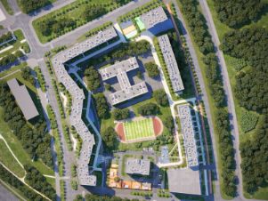 залива и новая современная инфраструктура в пешей доступности. Проект включает в себя пять тринадцатиэтажных "умных" домов в едином архитектурном стиле. Насыщенная социальная