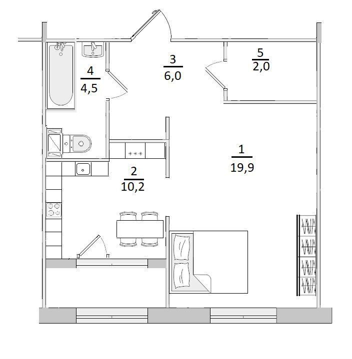 Эргономичная планировка, выполнено грамотное зонирование, есть гардеробная комната.