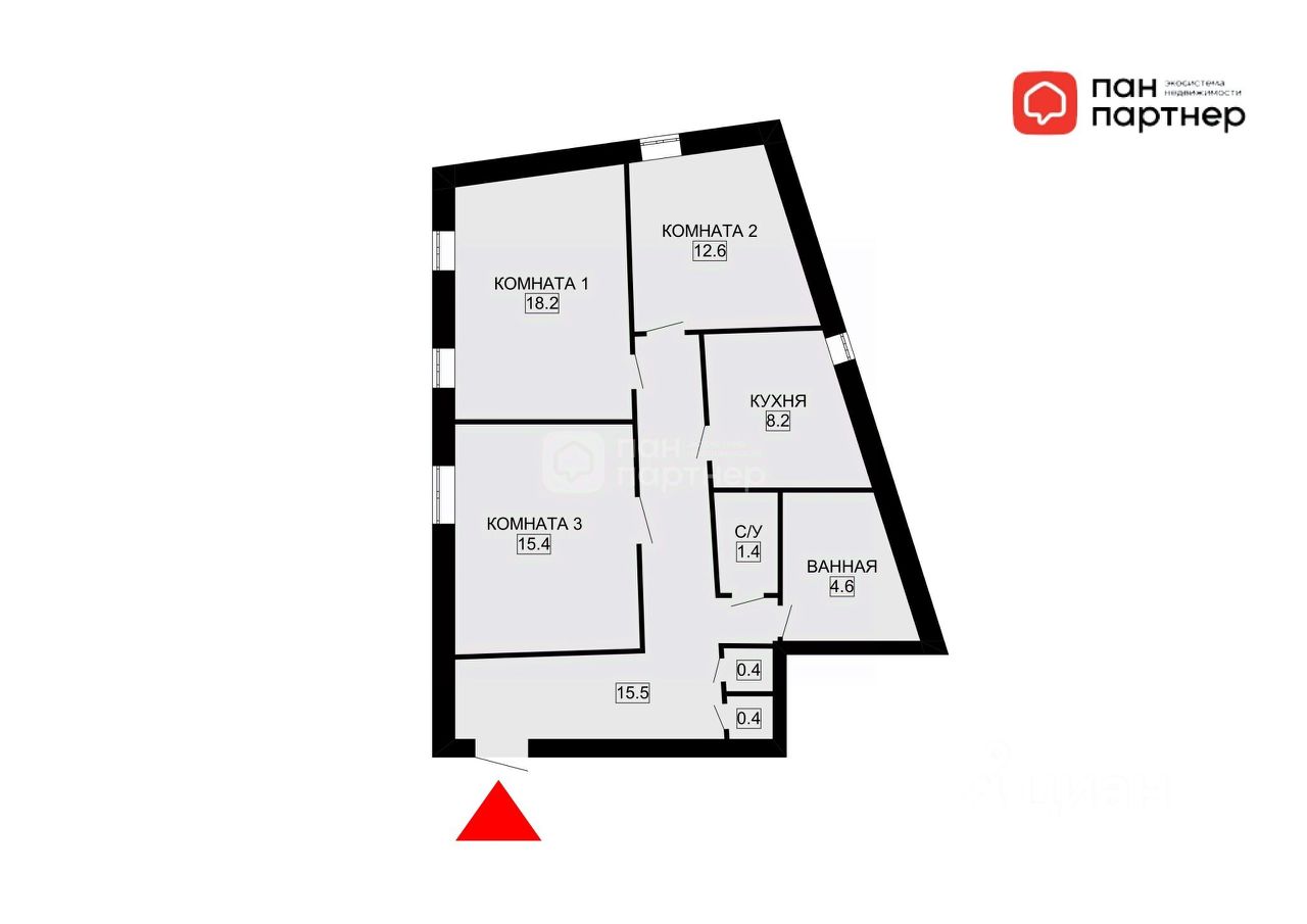 Удобная планировка : 3 отдельные комнаты для всей семьи, просторная кухня, раздельный санузел и широкий коридор помогут избежать утренней суеты.