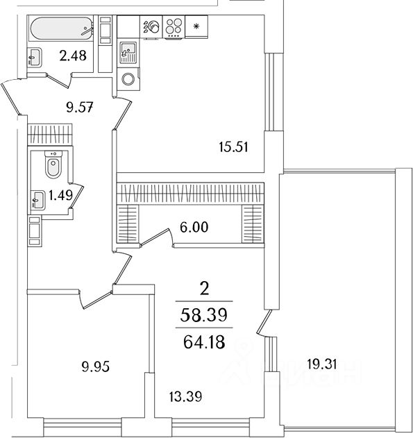 В квартире выполнен косметический ремонт, что позволяет вам сразу заселиться и обустроить пространство по своему вкусу. Приятным бонусом станет просторная кухня площадью 15,51 кв. м, где вы сможете воплотить любые кулинарные замыслы. Квартира оборудована всем необходимым для комфортного проживания.