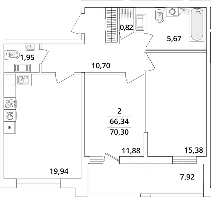 Продается просторная двухкомнатная квартира в современном доме на 10-м этаже, общая площадь 70.7 кв. м. Дом построен в 2024 году и насчитывает 18 этажей. Высота потолков — 2.75 метра. Из окон открывается вид на тихий двор. Кухня приятно удивит своими размерами — почти 20 квадратных метров, что отлично подойдет для создания уютной обеденной зоны.