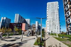 Двор и безопасностьЗакрытая придомовая территория без машин, с ландшафтным дизайном, велосипедными дорожками, зонами отдыха, детскими и спортивными площадками, парковками для велосипедов.