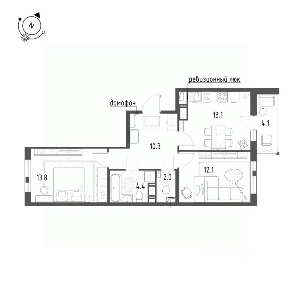 Кухня-гостиная 13,1 м2.
