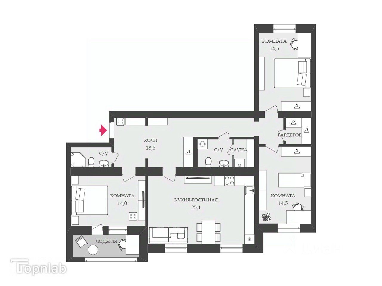 Простор и комфорт: 3 изолированные спальни и огромная кухня-гостиная 25 м² — идеально для жизни большой семьи и приёма гостей.