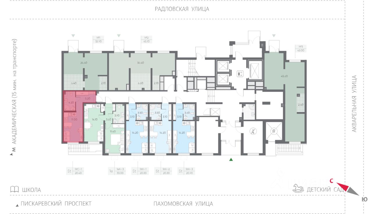 • 10 минут до станции метро "Академическая" на автобусе;