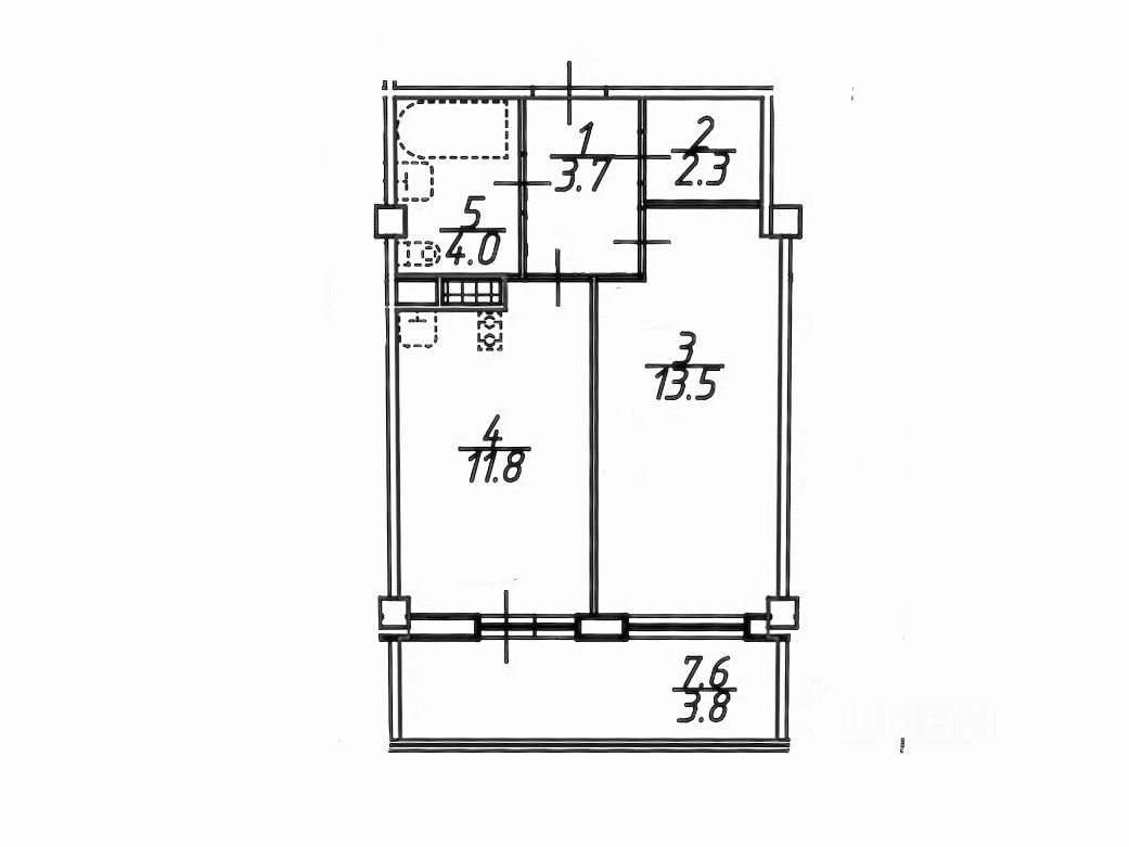 - 2Евро, 35,3 м² + лоджия 7,6 м²- максимум полезной площади