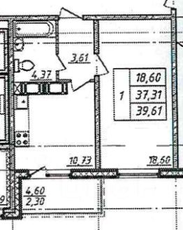 Общая площадь39,5 м²