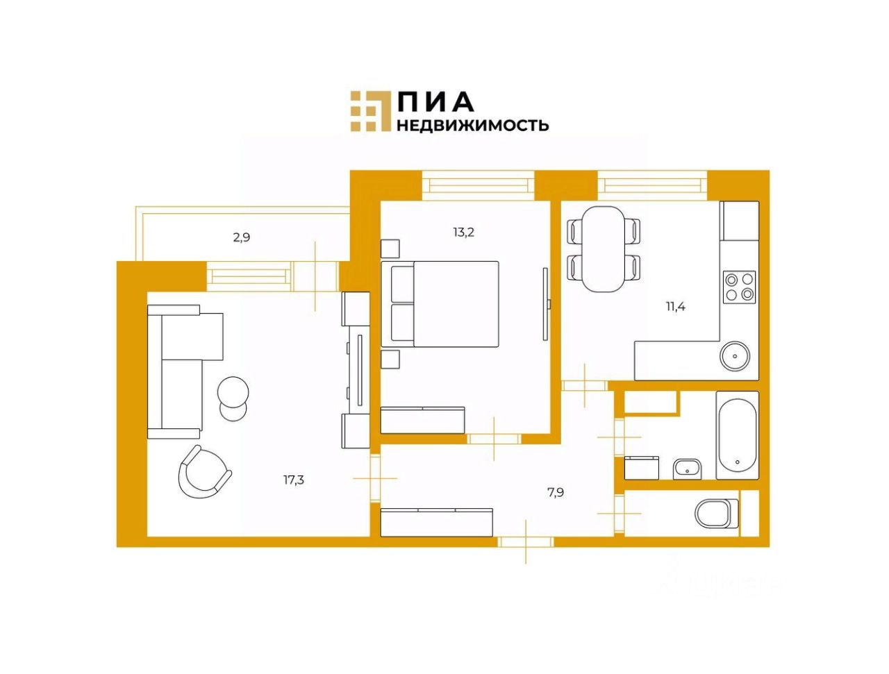 Квартира продается с мебелью и техникой и полностью готова для проживания: большая кухня с духовкой, холодильником и микроволновкой, два раскладывающихся дивана, много мест для хранения, полноценная ванна, стиральная машина. Есть лоджия.