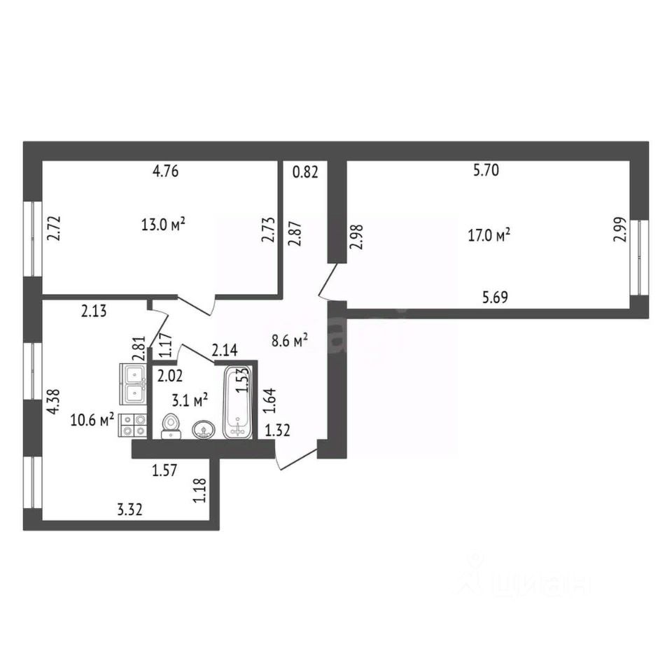 •Объект расположен на третьем из девяти этажей и отличается рациональной планировкой: изолированные комнаты общей площадью 30 кв. м, просторная кухня 10.6 кв. м.