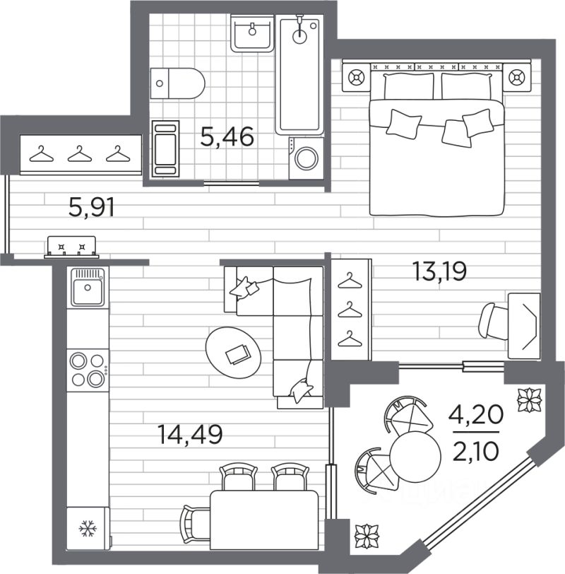Продаётся 1-комнатная квартира в строящемся доме (Дом 3), срок сдачи: IV-кв. 2027, общей площадью 41.15 кв.м., на 8 этаже. Жилой квартал Respect - современная респектабельность.